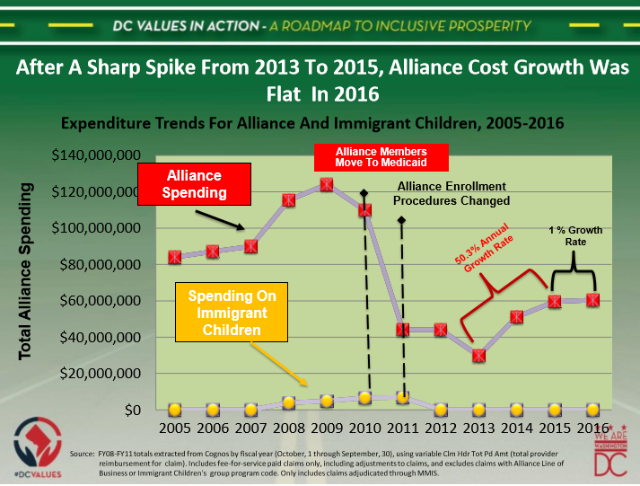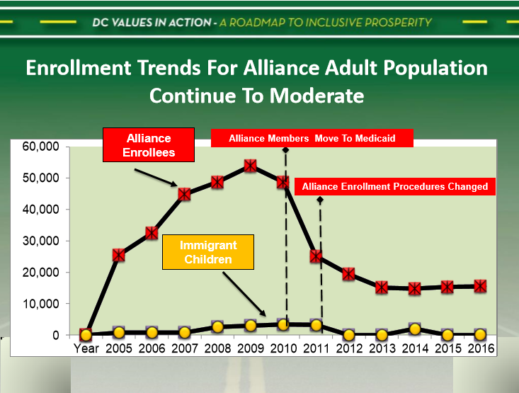 Mr. Chairman, the next topic of my testimony focuses on the Alliance program. In a market that is closed to all private insurance plans that do not participate on the federal exchange, the Alliance program is the only link to coverage for District residents who do not presently enjoy United States citizenship or are legal immigrant residents within the five-year period of their arrival in the U.S.